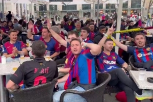 記者曬出視頻并寫道:“多特蒙德市中心充滿巴薩球迷的熱鬧氛圍,露臺上擠滿了巴薩支持者,3000名巴薩球迷今晚將在多特主場為弗里克的球隊(duì)助威。場面壯觀,對冠軍的渴望正在燃燒?!?/p>