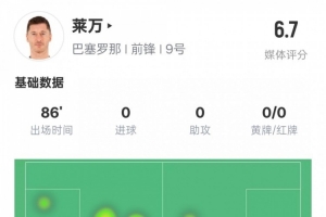 萊萬本場比賽具體數(shù)據(jù)如下: