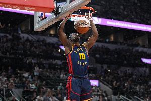 體育資訊4月16日訊 NBA附加賽,勇士半場67-55領(lǐng)先灰熊。