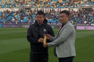 體育資訊4月16日訊 在津門虎本輪對陣海港賽前,于根偉領取中超最佳教練獎杯。