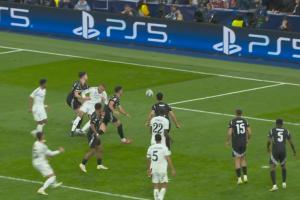 體育資訊04月17日訊 歐冠1/4決賽次回合,皇馬對陣阿森納。23分鐘,賴斯禁區(qū)內(nèi)對姆巴佩犯規(guī),裁判判罰點球。