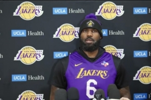 體育資訊4月19日訊 今日,湖人前鋒詹姆斯在訓(xùn)練后接受了采訪。