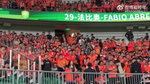 比賽第52分鐘法比奧頭球破門,此時(shí)山東泰山已經(jīng)1-4落后北京國(guó)安,并且已經(jīng)被罰下2人,有部分泰山球迷已經(jīng)提前退場(chǎng)了。