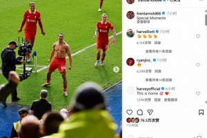 本場比賽阿諾德替補登場打進制勝球,賽后他也在個人社媒曬出進球后脫衣慶祝照片,配文寫道:“特殊的時刻!”