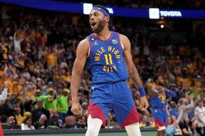 體育資訊4月22日訊 NBA季后賽,掘金上半場(chǎng)以52-55落后快船。