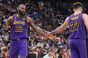 詹姆斯場(chǎng)均28.3分8.0籃板7.0助攻;東契奇場(chǎng)均33.6分7.8籃板8.6助攻。