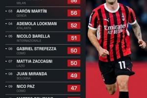體育資訊4月23日訊 Squawka統(tǒng)計(jì)了本賽季意甲球員創(chuàng)造機(jī)會(huì)次數(shù)的排行,普利西奇以60次位居第一。