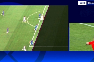 判例三:中超聯(lián)賽第8輪,上海申花VS武漢三鎮(zhèn),比賽第65分鐘,武漢三鎮(zhèn)隊(duì)進(jìn)球,助理裁判示意越位;裁判員判武漢三鎮(zhèn)隊(duì)越位犯規(guī)在先,進(jìn)球無(wú)效;VAR檢查并劃線后,確認(rèn)越位。