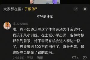 球迷留言:哎,真不知道足球這個體育運動為什么這樣,我孩子從小訓練,在土城小學出師,各種考核都名列前茅,好不容易有機會進泰達一隊了,被要繳納500萬而擋住了,真是無奈,最終好球員倒在了錢的面前。