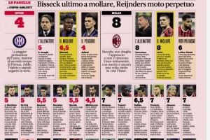 體育資訊4月24日訊 意大利杯半決賽次回合,米蘭3-0國米并以4-1的總比分擊敗對手晉級決賽,《米蘭體育報》賽后給雙方球員評分。