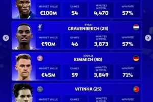 德轉(zhuǎn)評(píng)選年度最佳前腰名單:貝林厄姆、B費(fèi)、帕爾默、索博斯洛伊