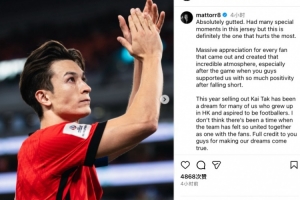 無緣亞洲杯,安永佳社媒:此刻讓人神傷,但相信球隊會變得更強